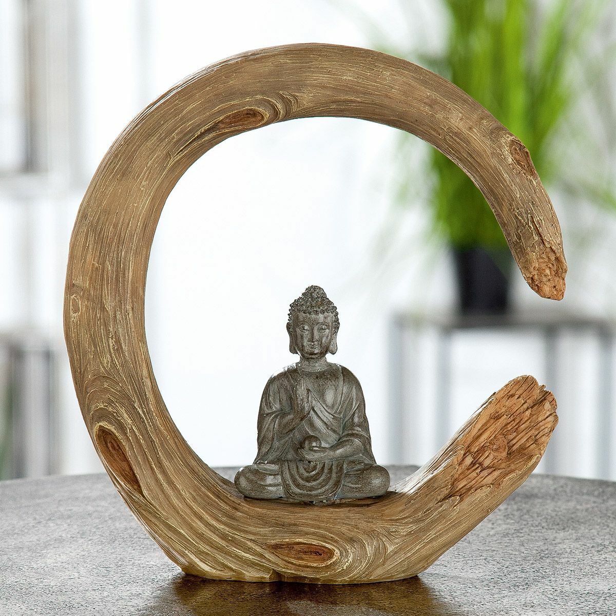 Gilde 37386 Skulptur "Buddha" naturfarben in Holzoptik, Buddha in grau/braun