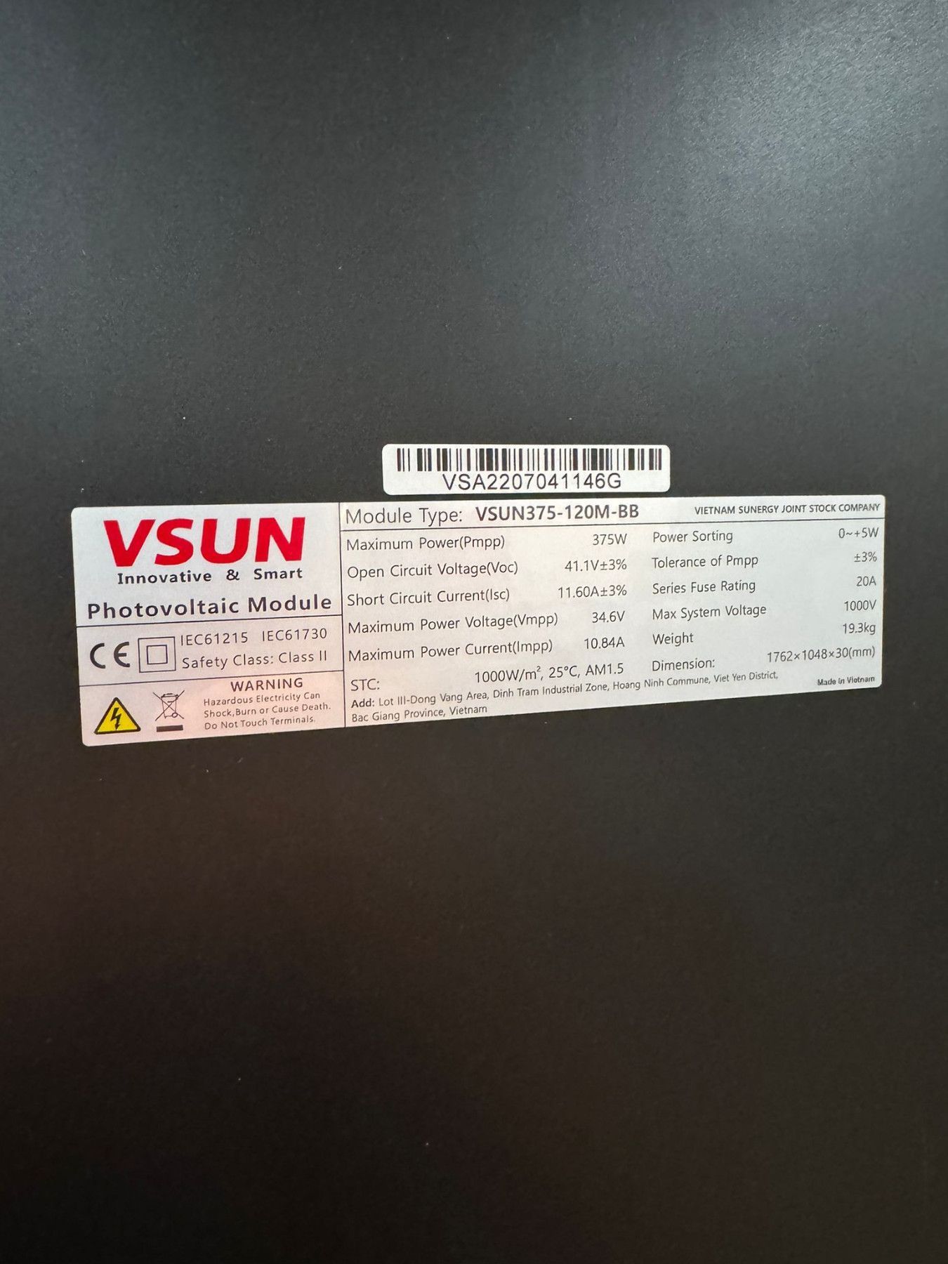 375W VSUN 375-120M-BB Full Black 1762x1048x30mm Solarpanel Solarmodul Photovoltaik