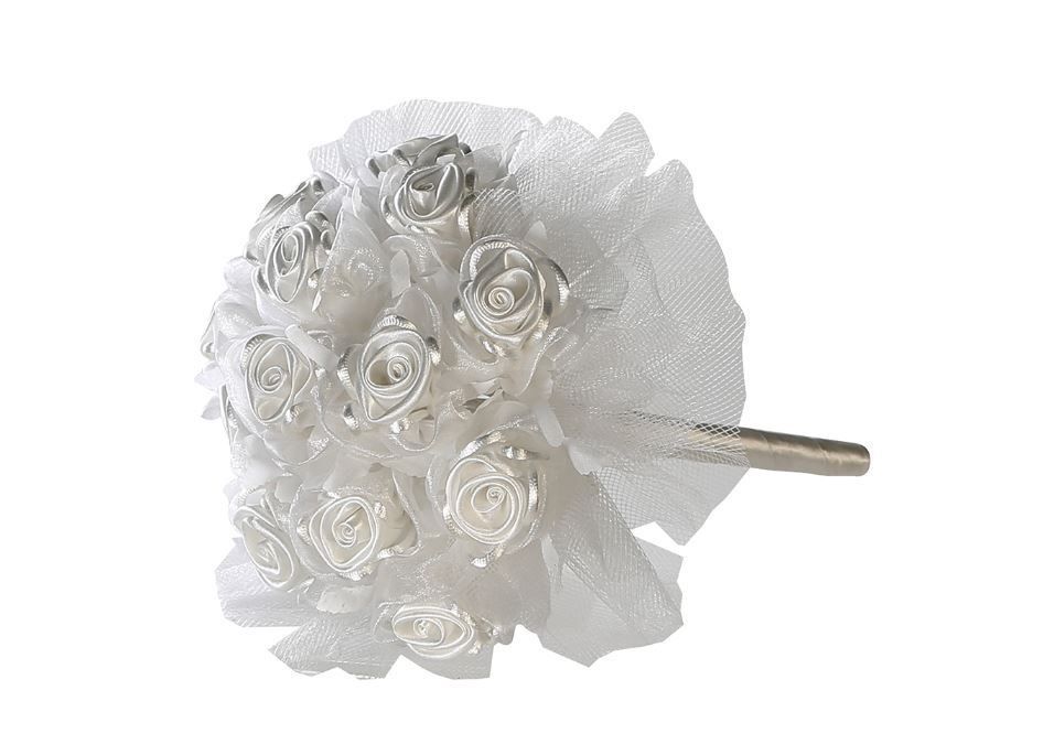 38422 Hochzeitsbouquet White Roses 16 Stoffrosen und Tüll weiß als Strauß