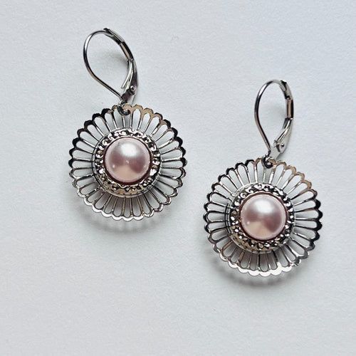 3987 Vintage Earring mit Swarovski Pearls 35mm