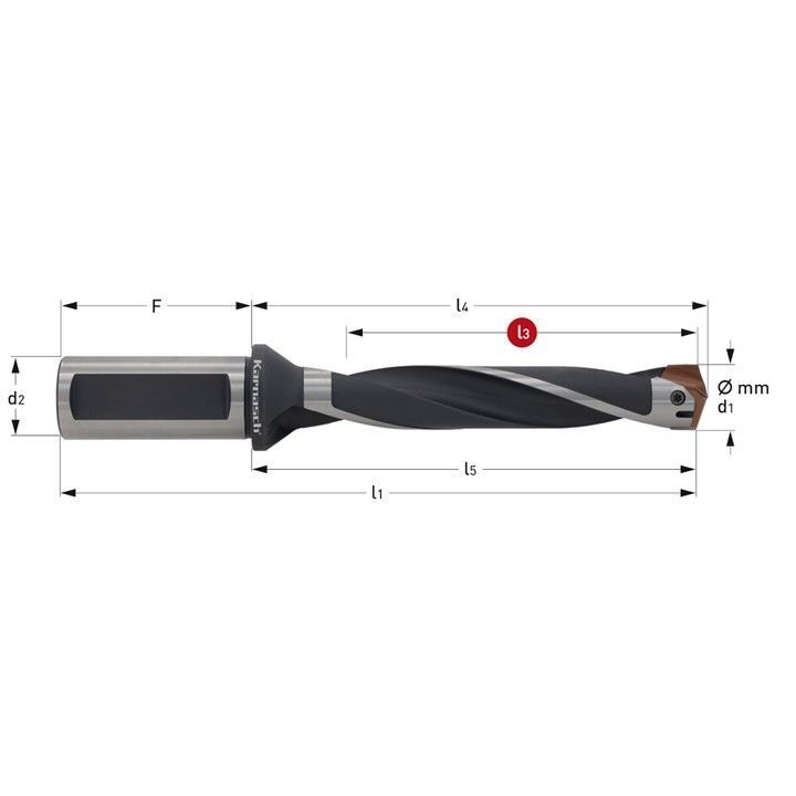 3D, 13,0mm x 40,50mm Wechselkopfbohrer Halter, spiral genutet, DIN 1835-B