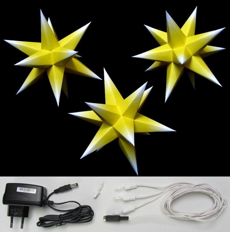 3D Adventsstern 3 kleine Sterne gelb / weiß innen-SET Weihnachtsstern Erzgebirge Neu