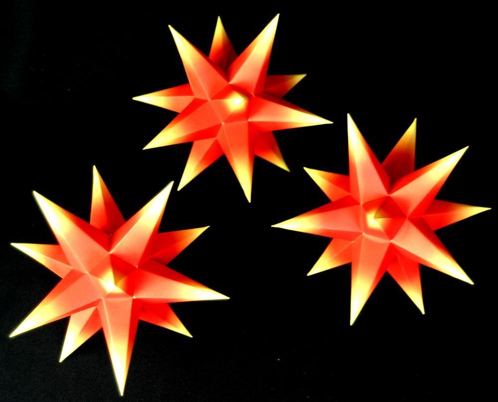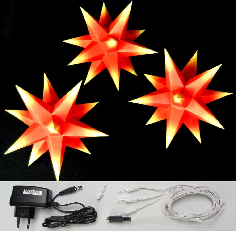 3D Adventsstern 3 kleine Sterne rot/ gelb innen-SET Weihnachtsstern Erzgebirge Neu