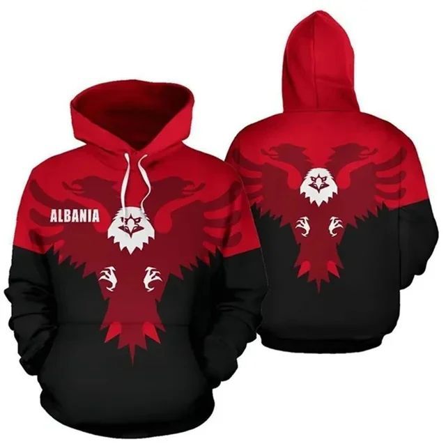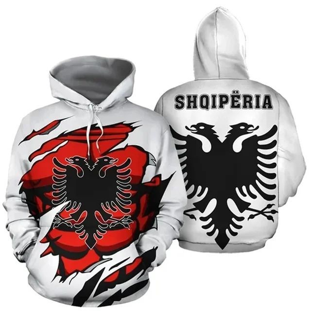 3D bete Albanien Flagge Landkarte Nationalemblem langen armeln Hoodie Pullover Jacke