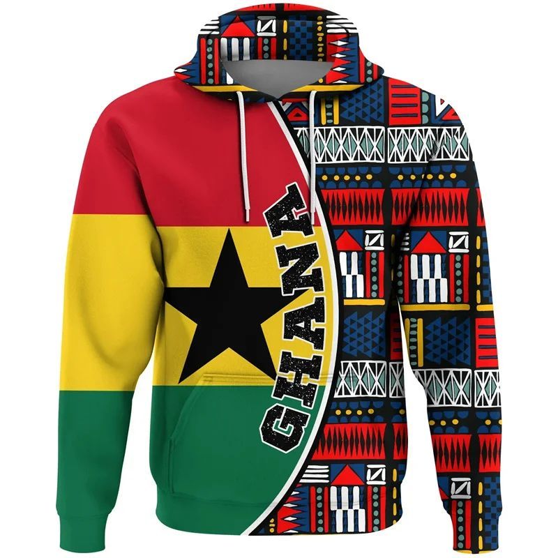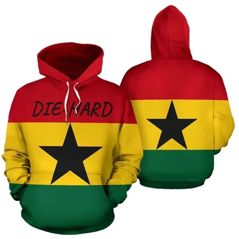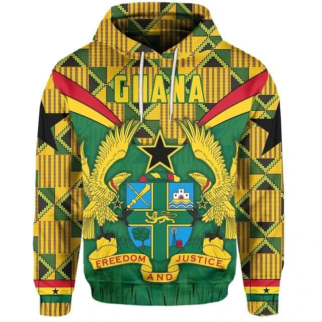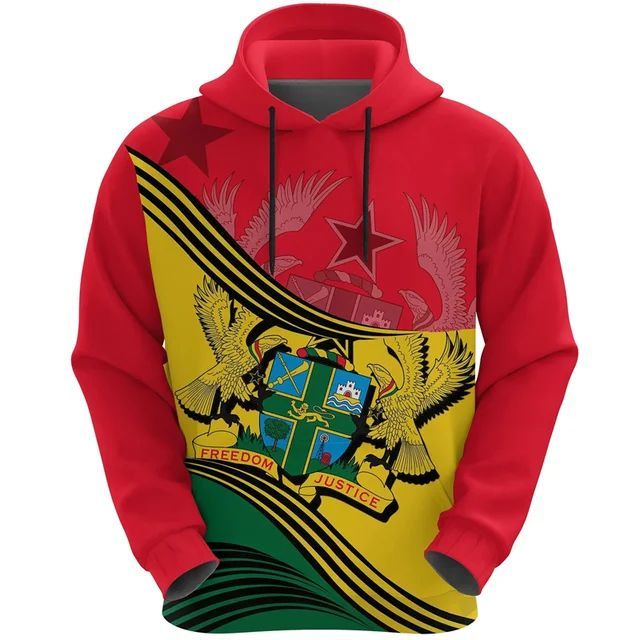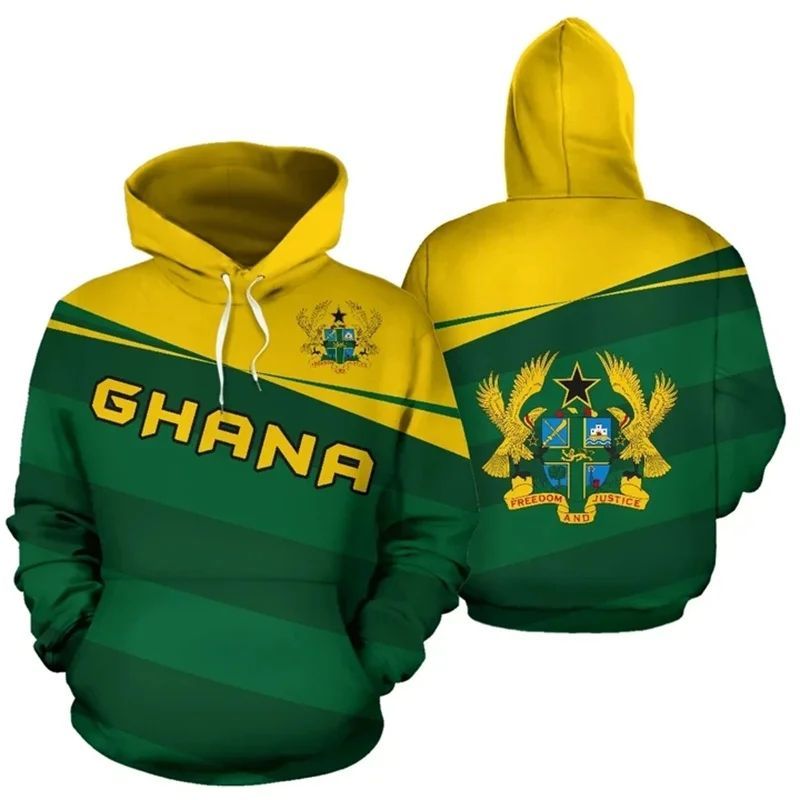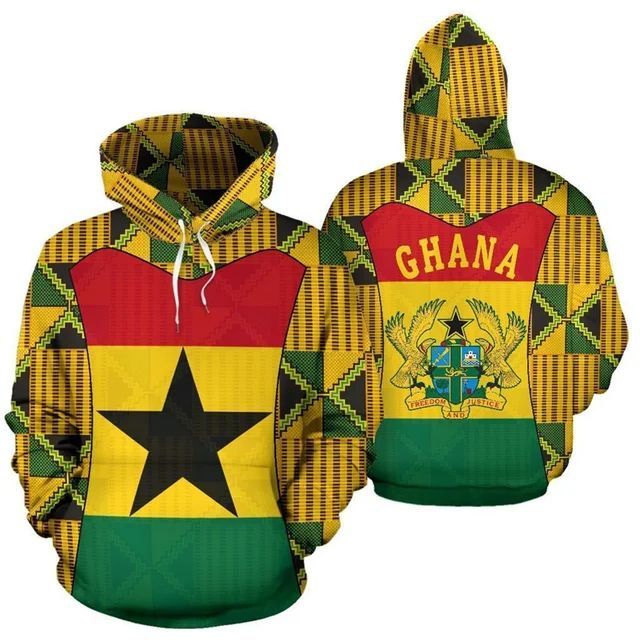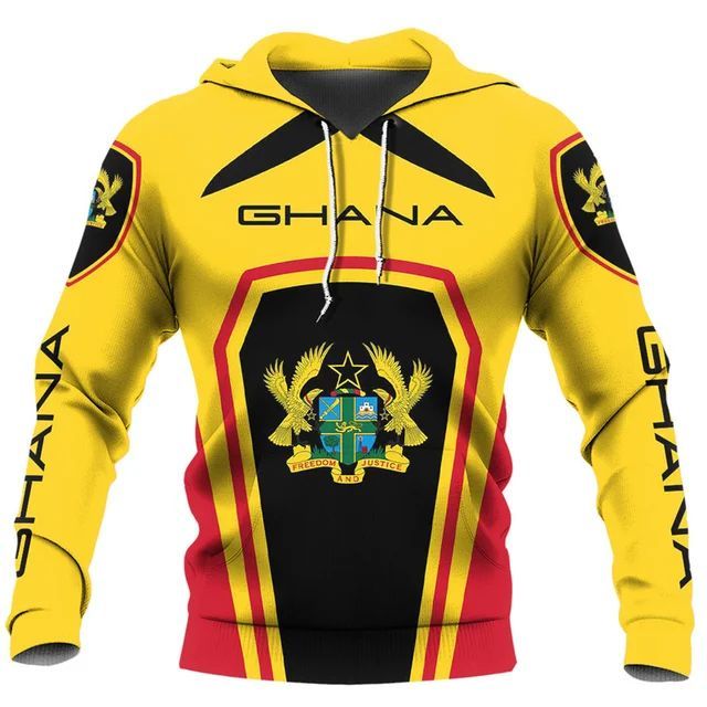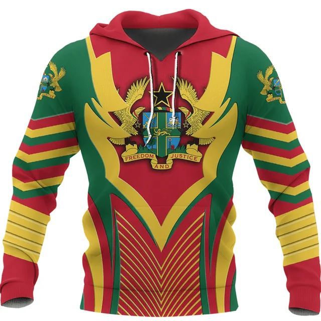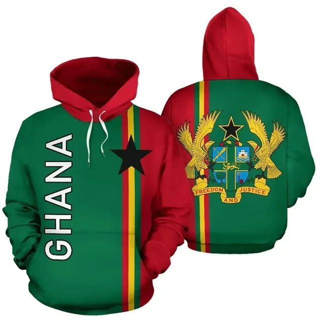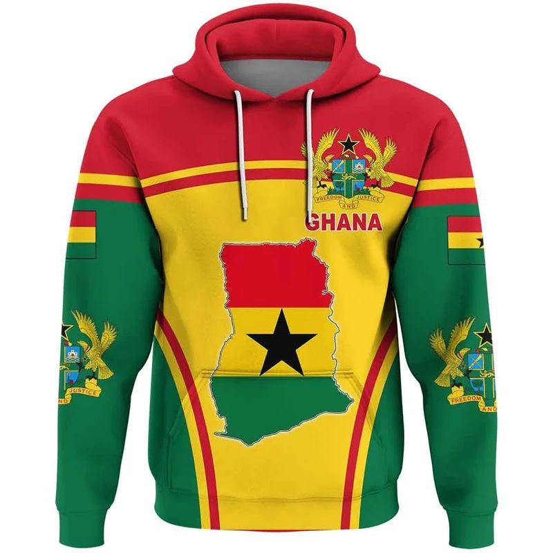 3D bete Ghana Flagge Landkarte Nationalemblem ubergroben armeln Hoodie Pullover Jacke