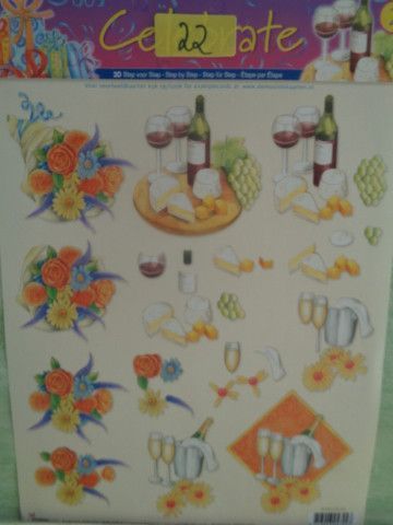 3D Bogen Din A4 Muffins Cake Kuchen Wein Champagner Früchte Käse Essen Trinken