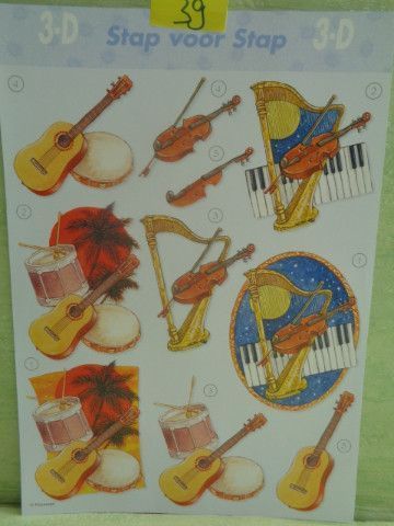 3D Bogen Urkunde Musik Instrument Sekt Kartenspiel Würfelbecher Früchte Gitarre Harfe