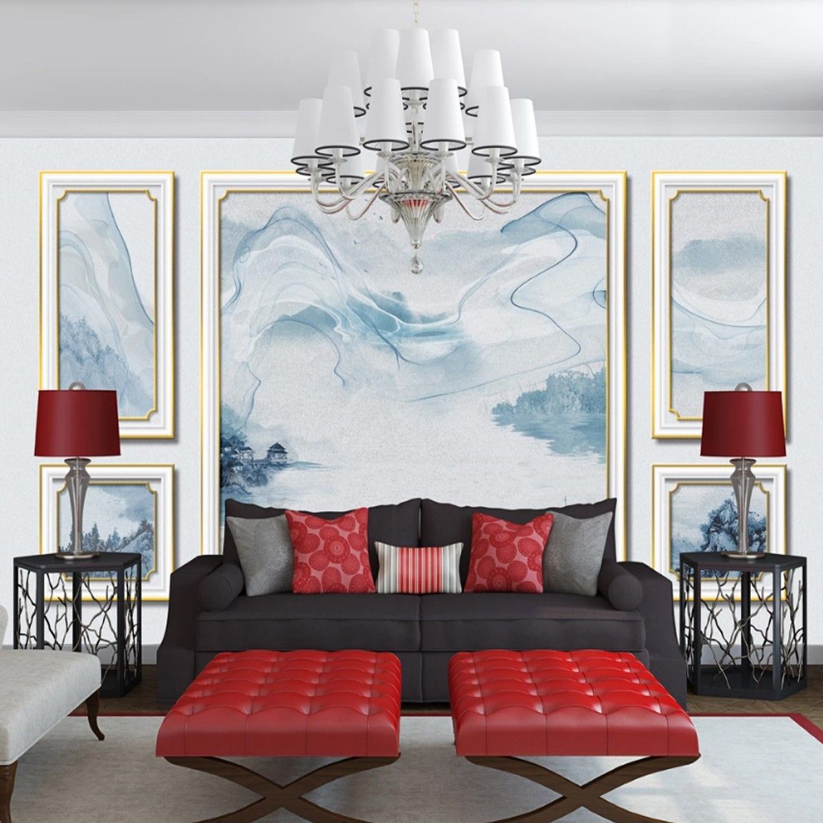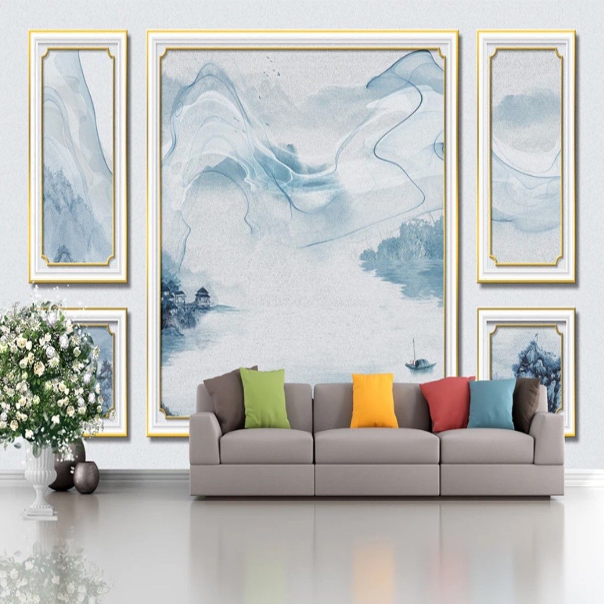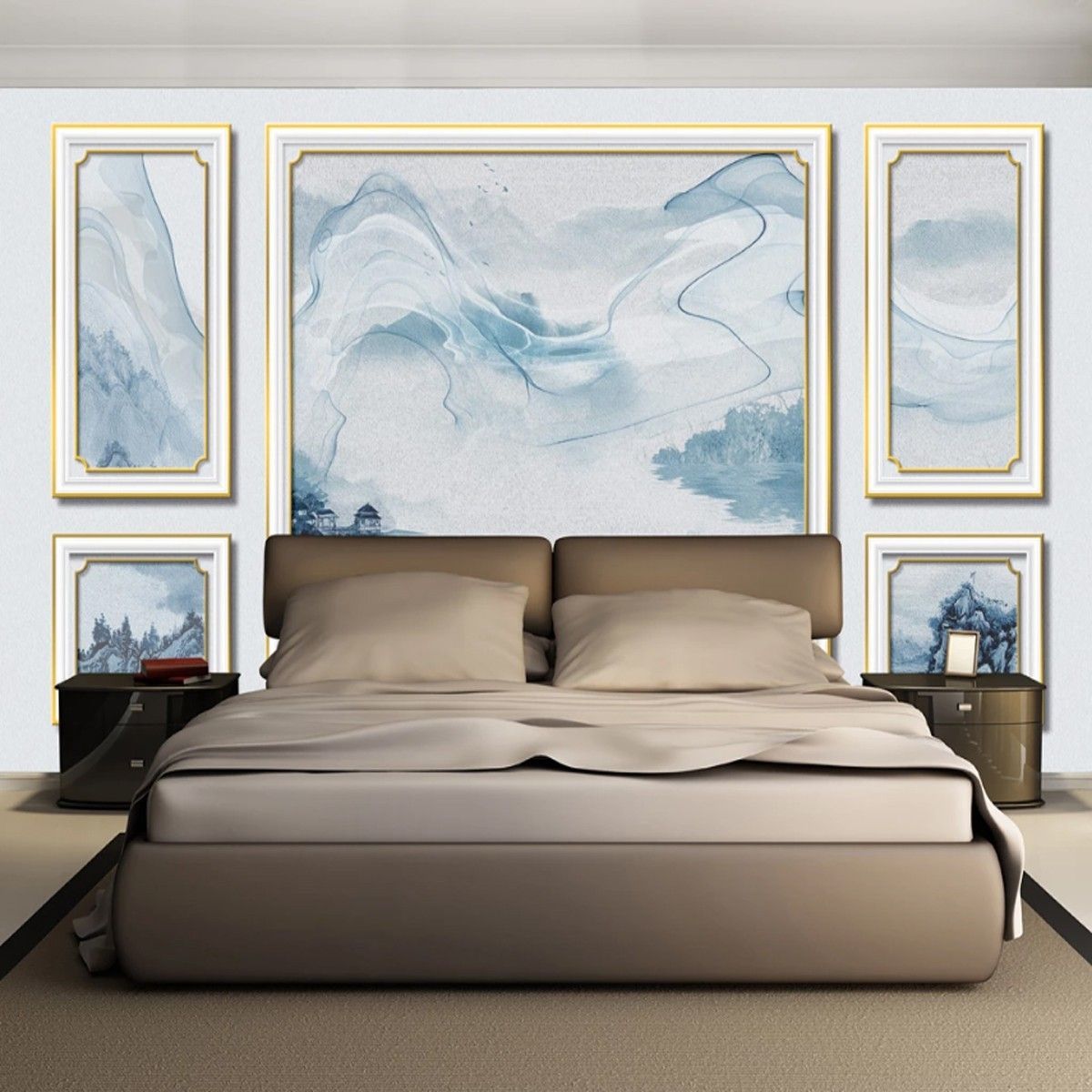 3D Fototapete Abstrakte Natur Goldrahmen Wanddeko Wohnzimmer & Schlafzimme 10342