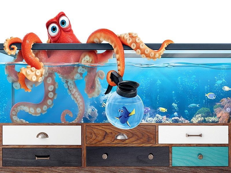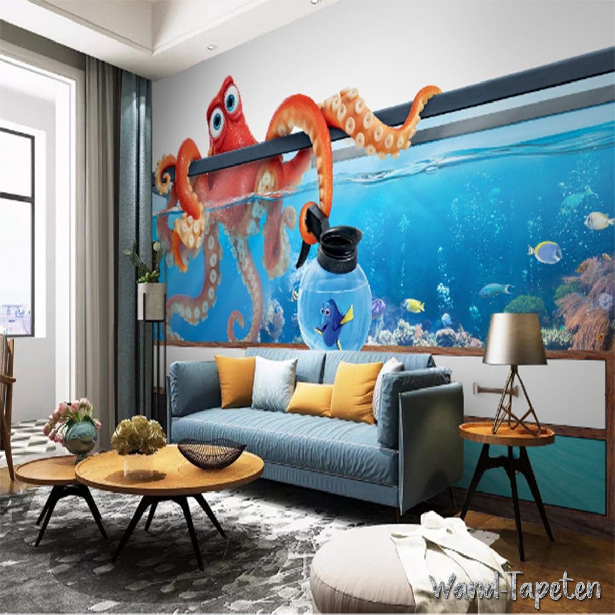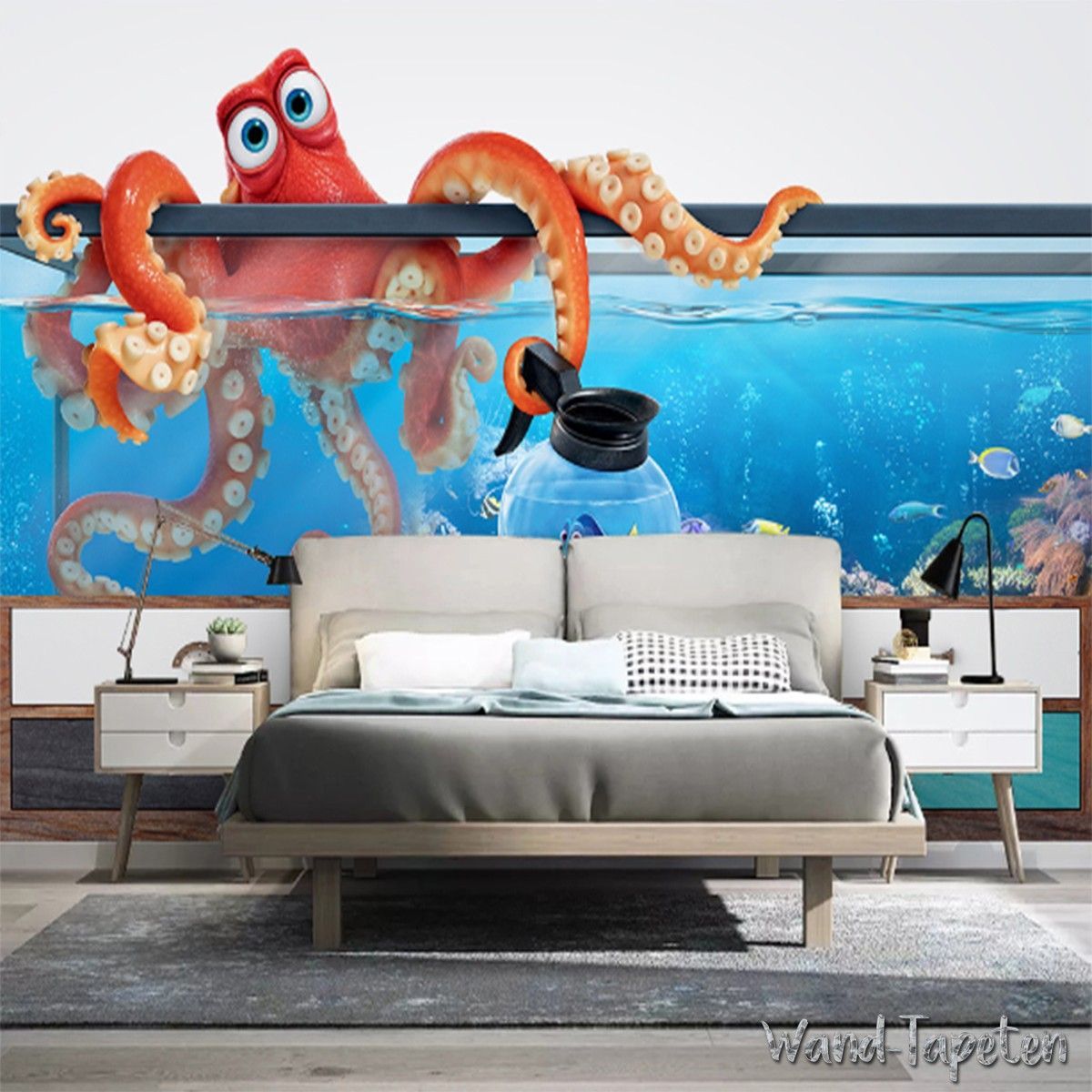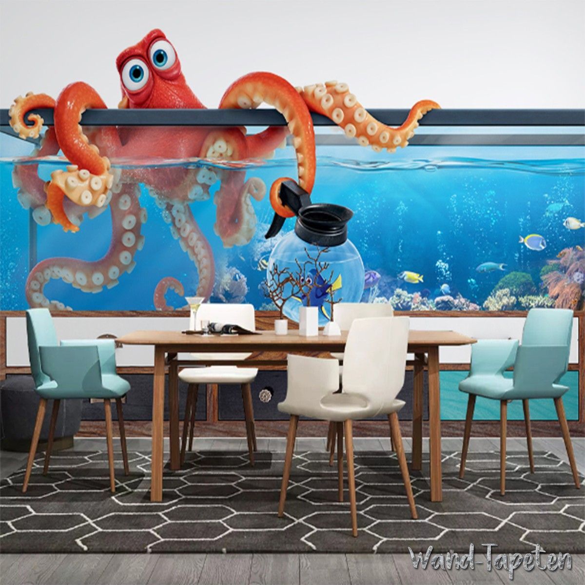 3D Fototapete Aquarium Oktopus - Unterwasser Wandtapete Fisch Tank Effekt 7820