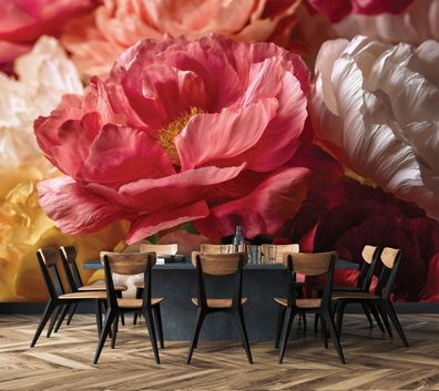 Vlies Fototapete Blumen Rose Pfingstrosen Modern TAPETE XXL Wohnzimmer Schlafzimmer