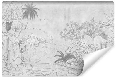 • Muralo Vlies Selbstklebende Fototapete tropische Pflanzen Palmen Vintage Stil
