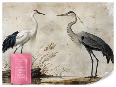 • Muralo Vlies Fototapete für Büro VÖGEL Kranich Reiher Retro Stil