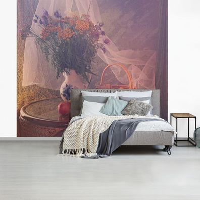 • Fototapete - 300x300 cm - Gemälde - Stilleben - Vase - Tisch - Orange - Kunst