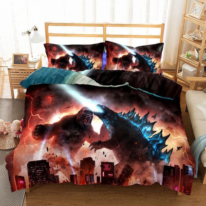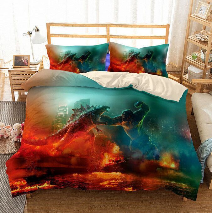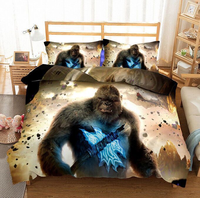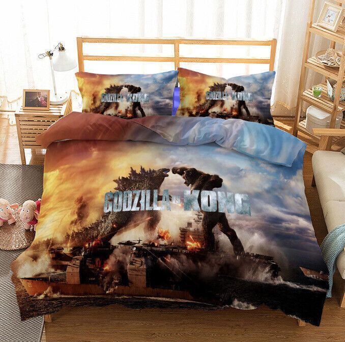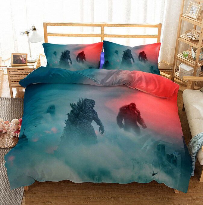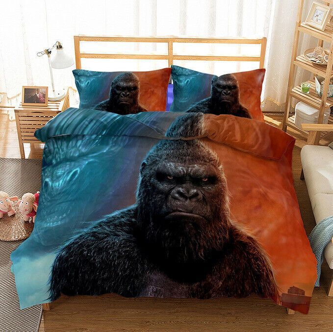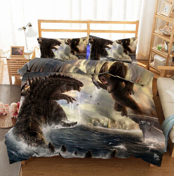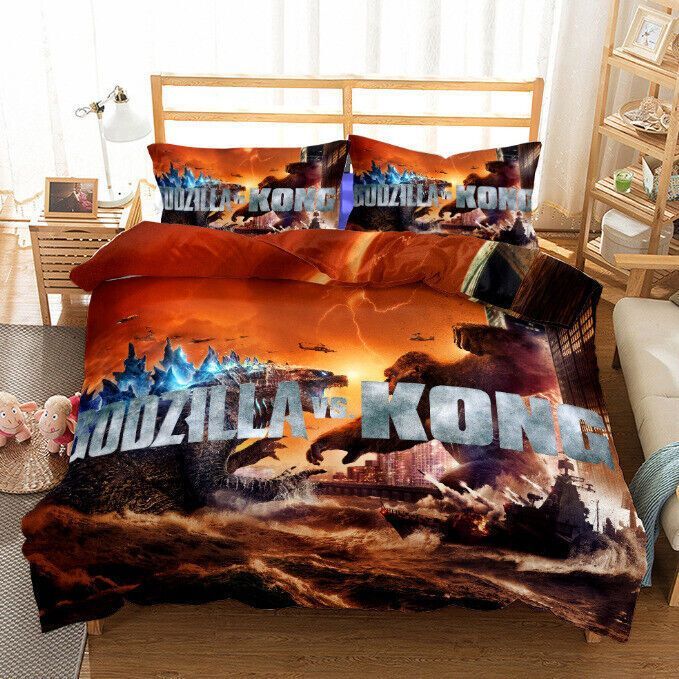 3D Godzilla VS Kong Bettbezug Kissenbezuge 2/3pcs Bettwasche-Set Single Double