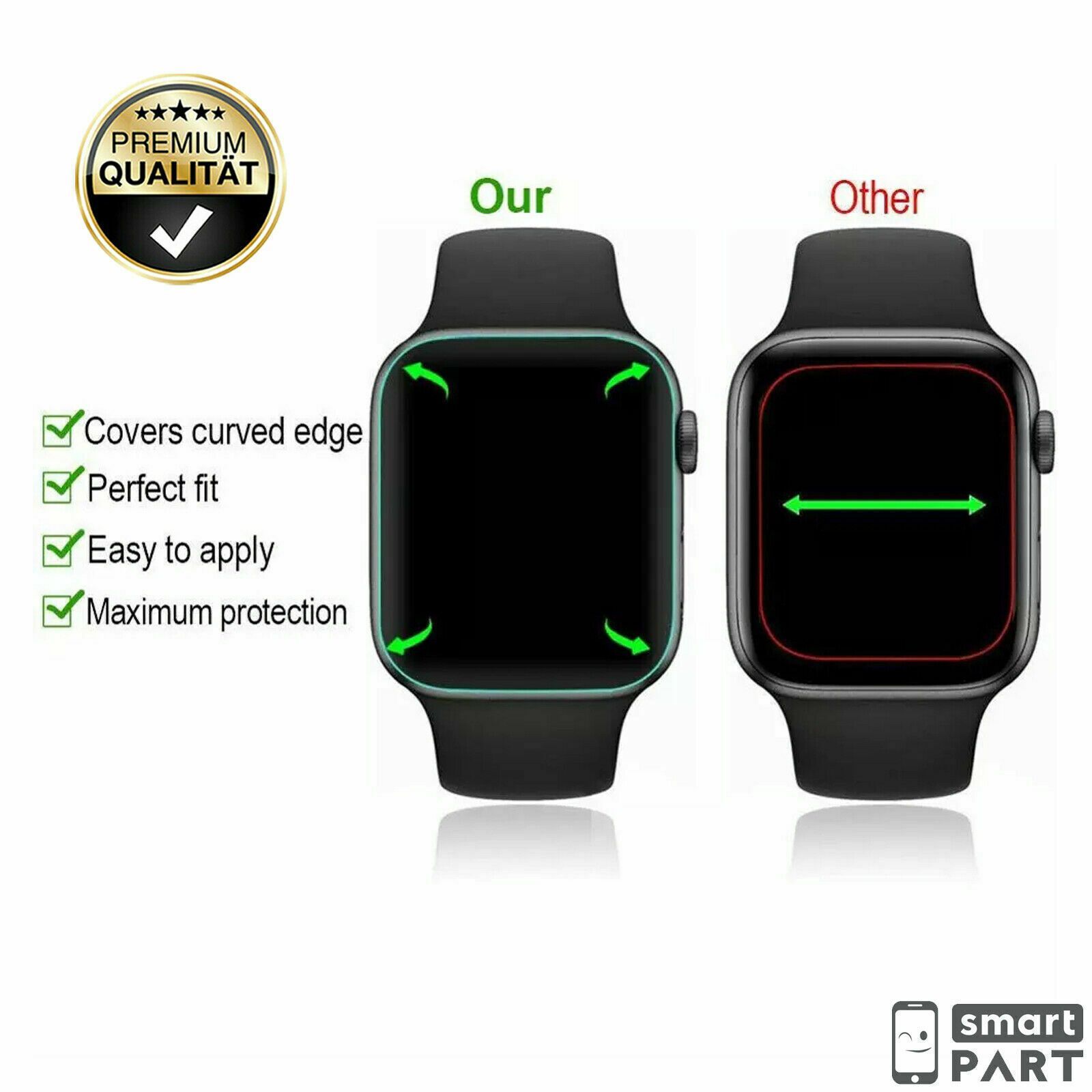 Premium Qualität Sofort Versand bis 15 Uhr! 24h Service! *****Echtes Premium***** Für Apple Watch - 3D Curved 9D Hydrogel Film Displayschutz Screen Protector Ultra Stark und Dünn Vollhaftend 100% Blasenfrei 100% Touch-Feeling und Touch Funktion - Inkl. Reinigungs Set Einfache Installation Euro Für A
