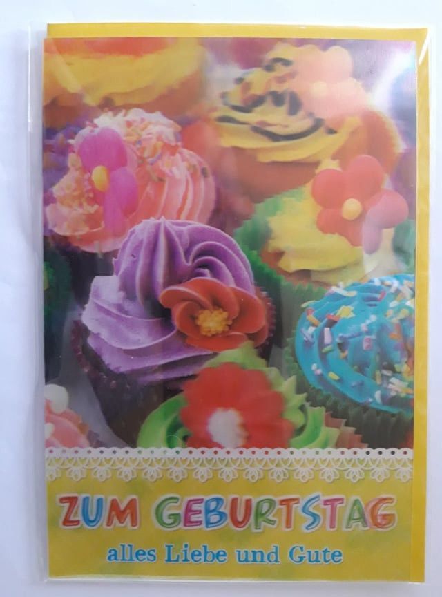Taunus Verlag 3D Karte Geburtstag Glückwunschkarte Doppelkarte Umschlag Wackelkarte Blumen Muffin