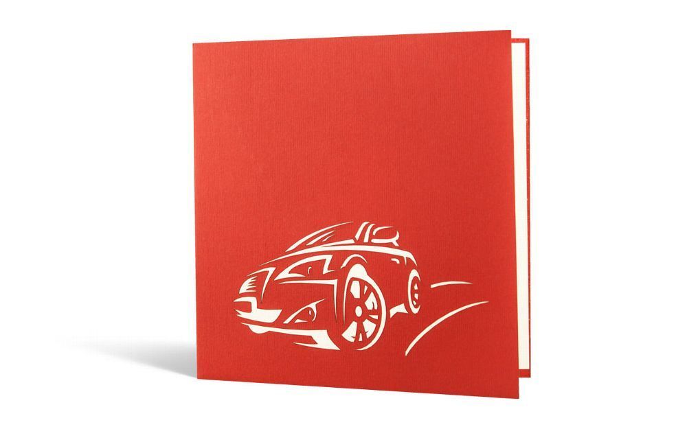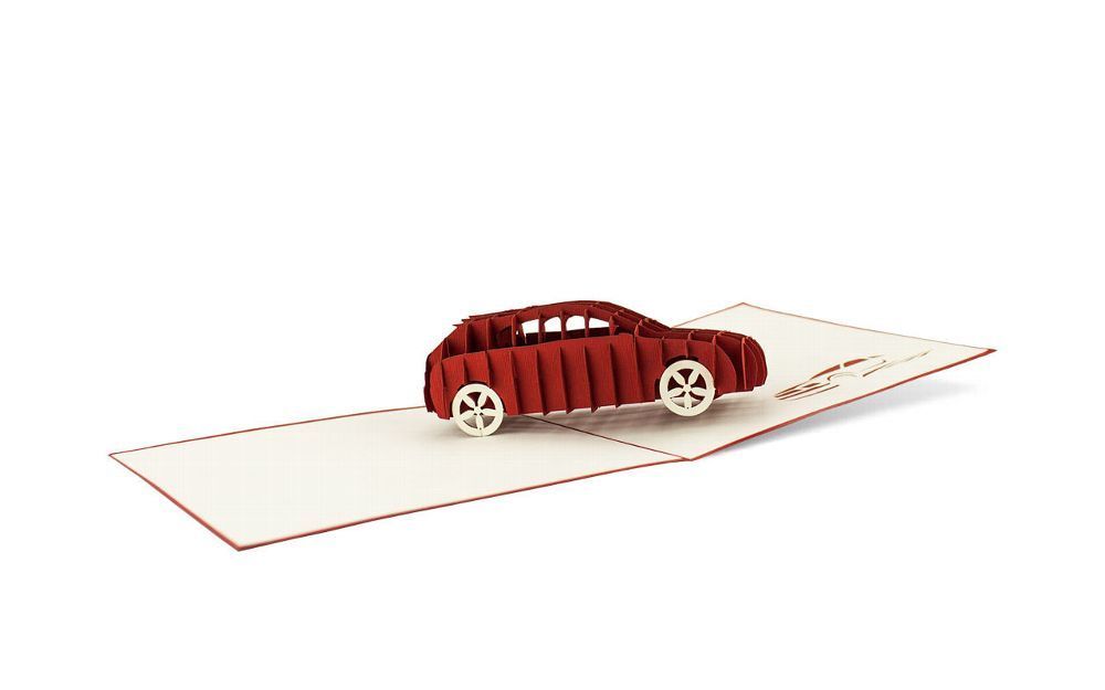 3D Klappkarte Auto Rot Glückwunschkarte Urlaub Fahrschule Grußkarte PopUp Karte