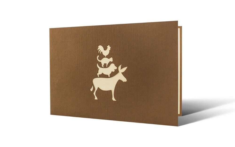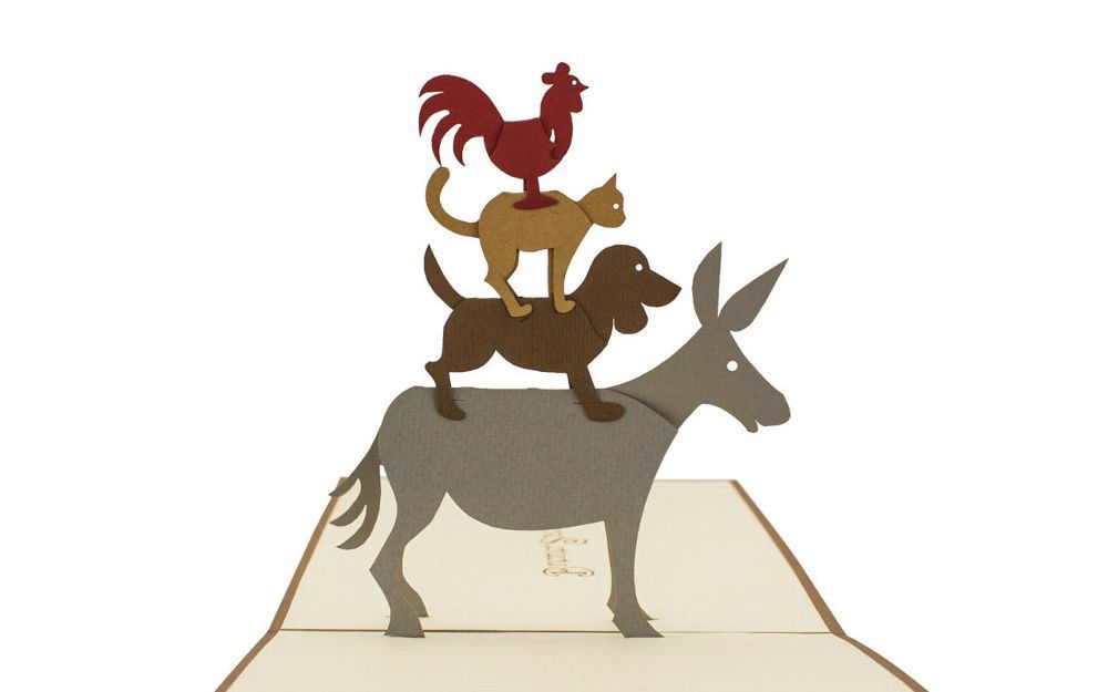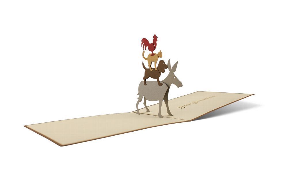 3D Klappkarte Bremer Stadtmusikanten Glückwunschkarte Urlaub Fliegen Grußkarte