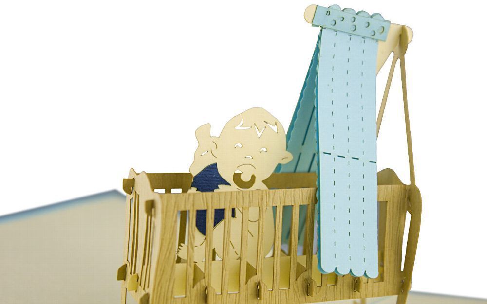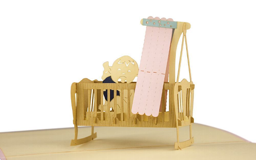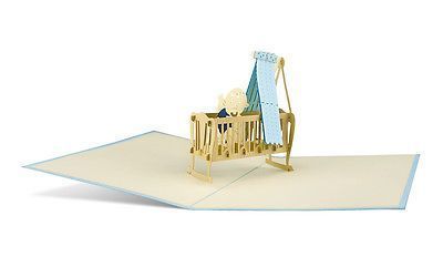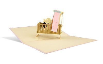 3D-Klappkarte Geburt Kinderwiege Baby Glückwunschkarte in rot rosa oder blau