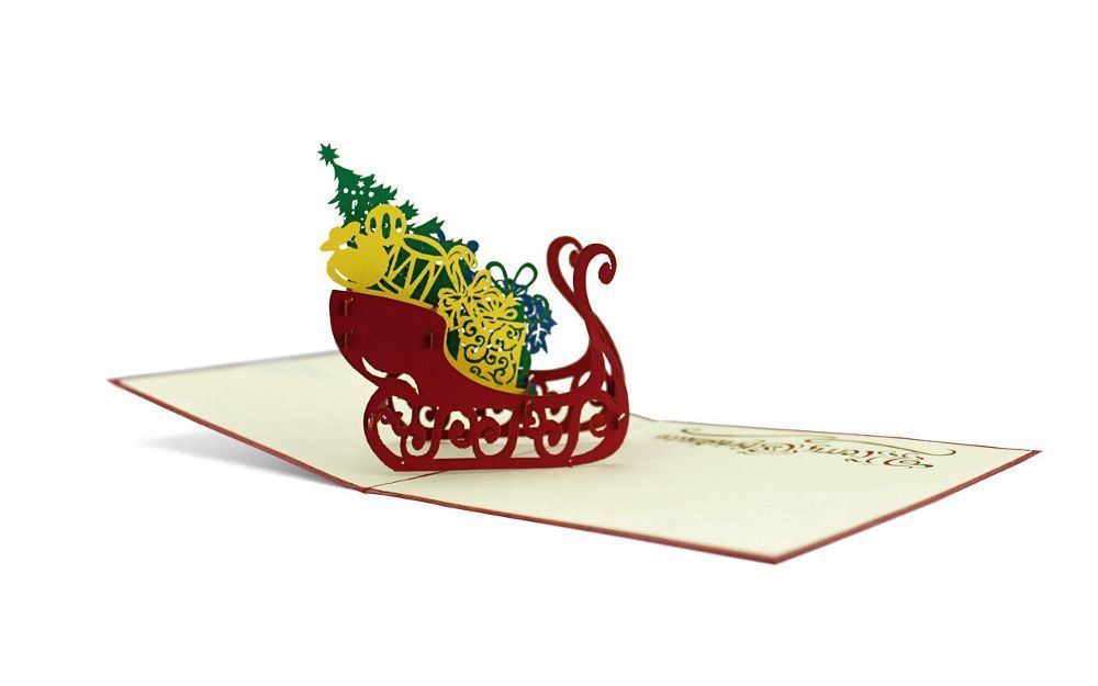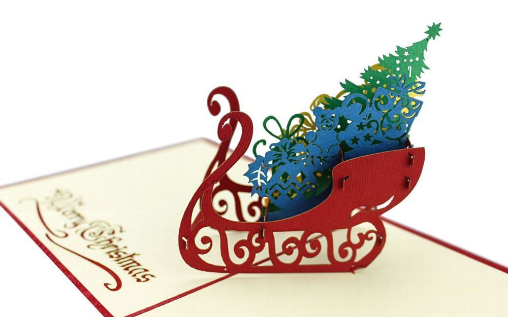3D Klappkarte Geschenkeschlitte Weihnachtskarte Weihnachtsschlitten