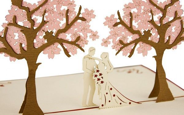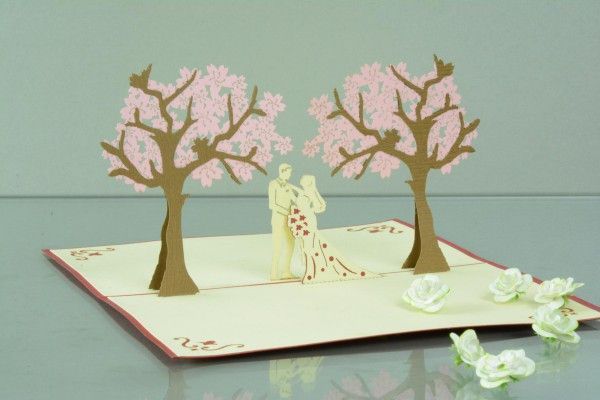 3D Klappkarte "Paar unter Bäumen" Glückwunschkarte Hochzeit Liebe Pop Up Karte