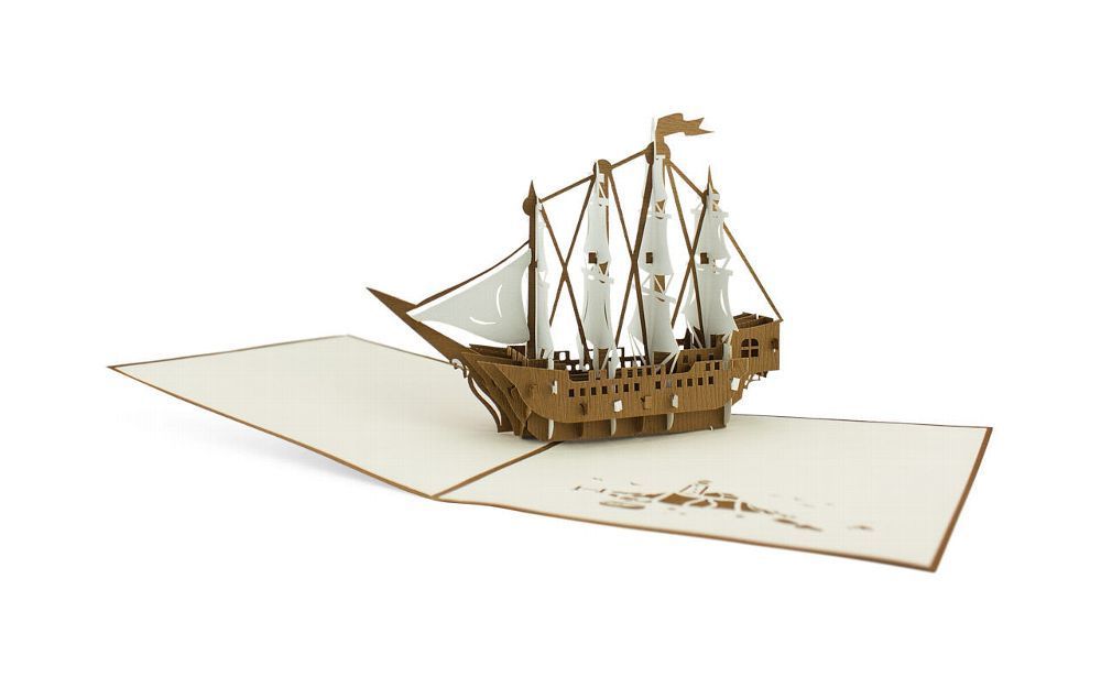3D Klappkarte Viermaster Glückwunschkarte Urlaub Boot Grußkarte Pop Up Karte