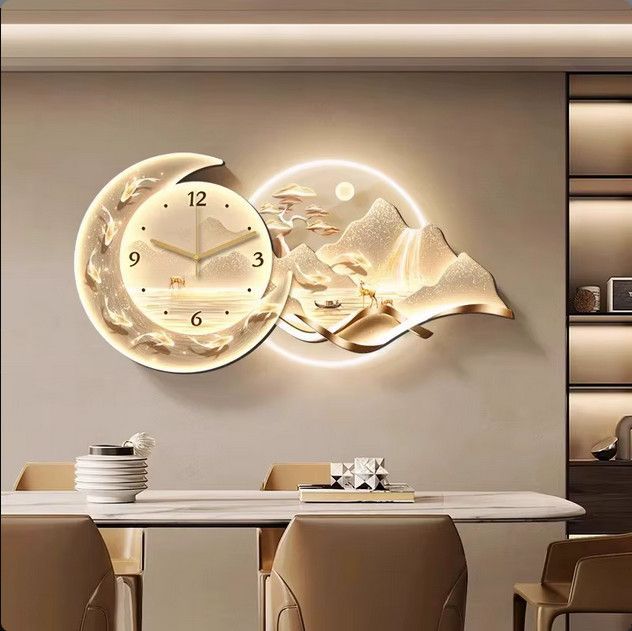 3D Künstlerische Landschafts Wandlampe inlusive Uhr Wanddeko Variante 4