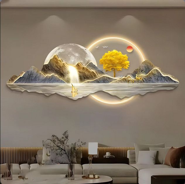 3D Künstlerische Landschafts Wandlampe inlusive Uhr Wanddeko Variante 5