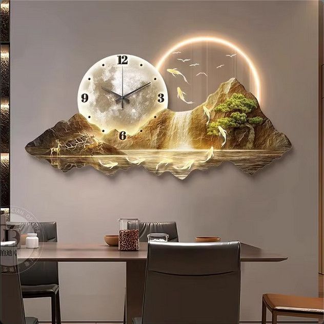 3D Künstlerische Landschafts Wandlampe inlusive Uhr Wanddeko Variante 6