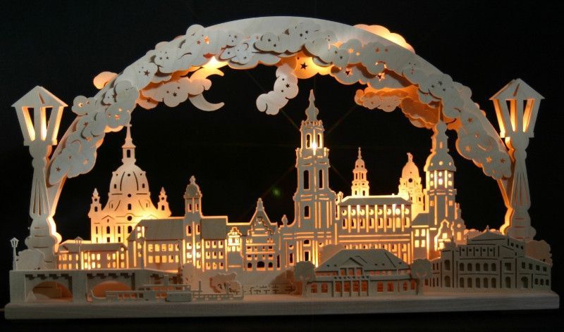 3D LED Schwibbogen Stadtansicht Dresden 70x40cm Frauenkirche Erzgebirge Lichterbogen