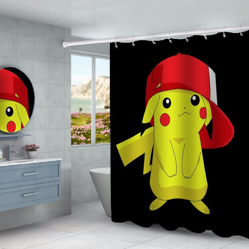 3D Pikachu Duschvorhänge Pokémon Badezimmer Vorhang Shower Curtain mit 12 Ringen