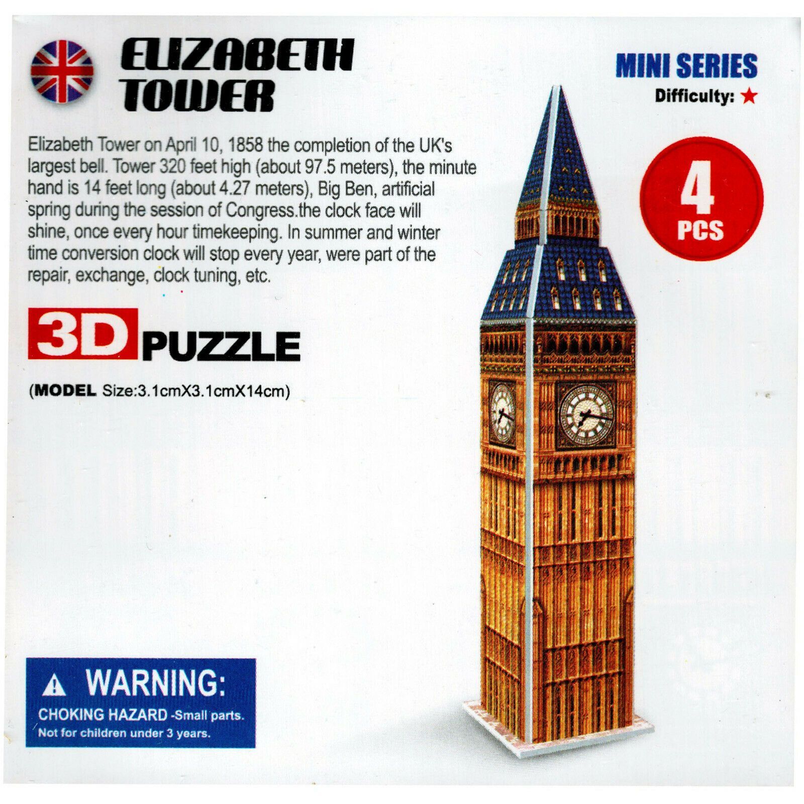 3D Puzzle Big Ben Mini Puzzle 4 Teile Miniatur Modell Elizabeth Tower London