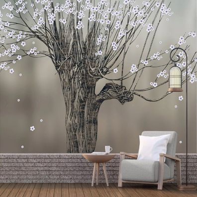 • Designer Wandtattoo Handgemalt Blumen & Baum 3D Fototapete modern 10315