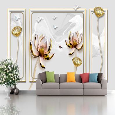 • 3D Fototapete Abstrakte Lotusblume Gold Wanddeko Wohnzimmer & Schlafzimmer 10341