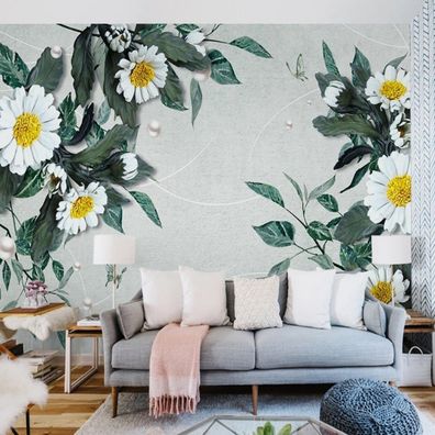 • Premium 3D Wandtapete Blumen Handgemalt Wandbild Modern Interior 10324