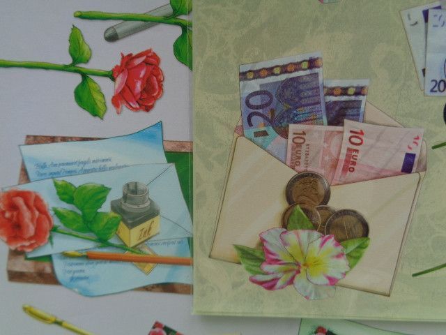 3D Schneidebogen Stanzmotiv Liebesbrief Tinte Rose Euro Gutschein Geschenke Vintage