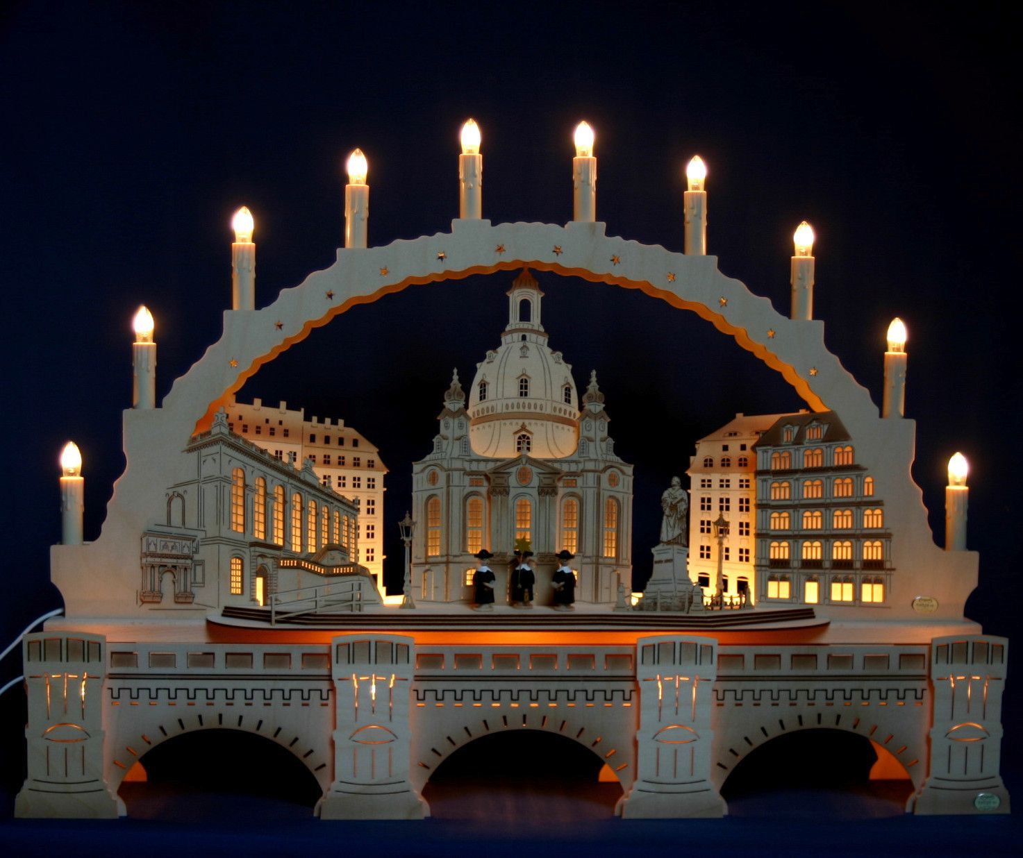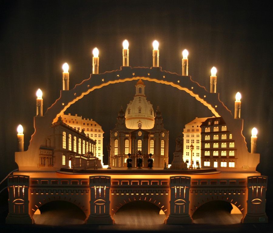 3D Schwibbogen 10 Kerzen 70cm Frauenkirche Dresden & Augustusbrücke Erzgebirge