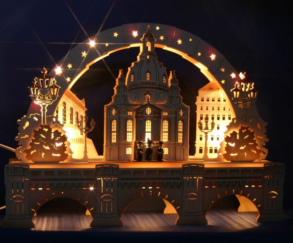 3D Schwibbogen 52cm Frauenkirche Dresden & Sockel Augustusbrücke Erzgebirge