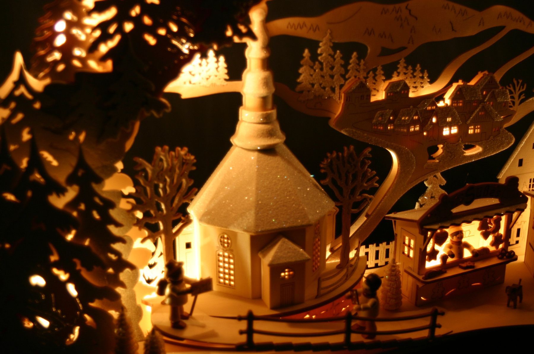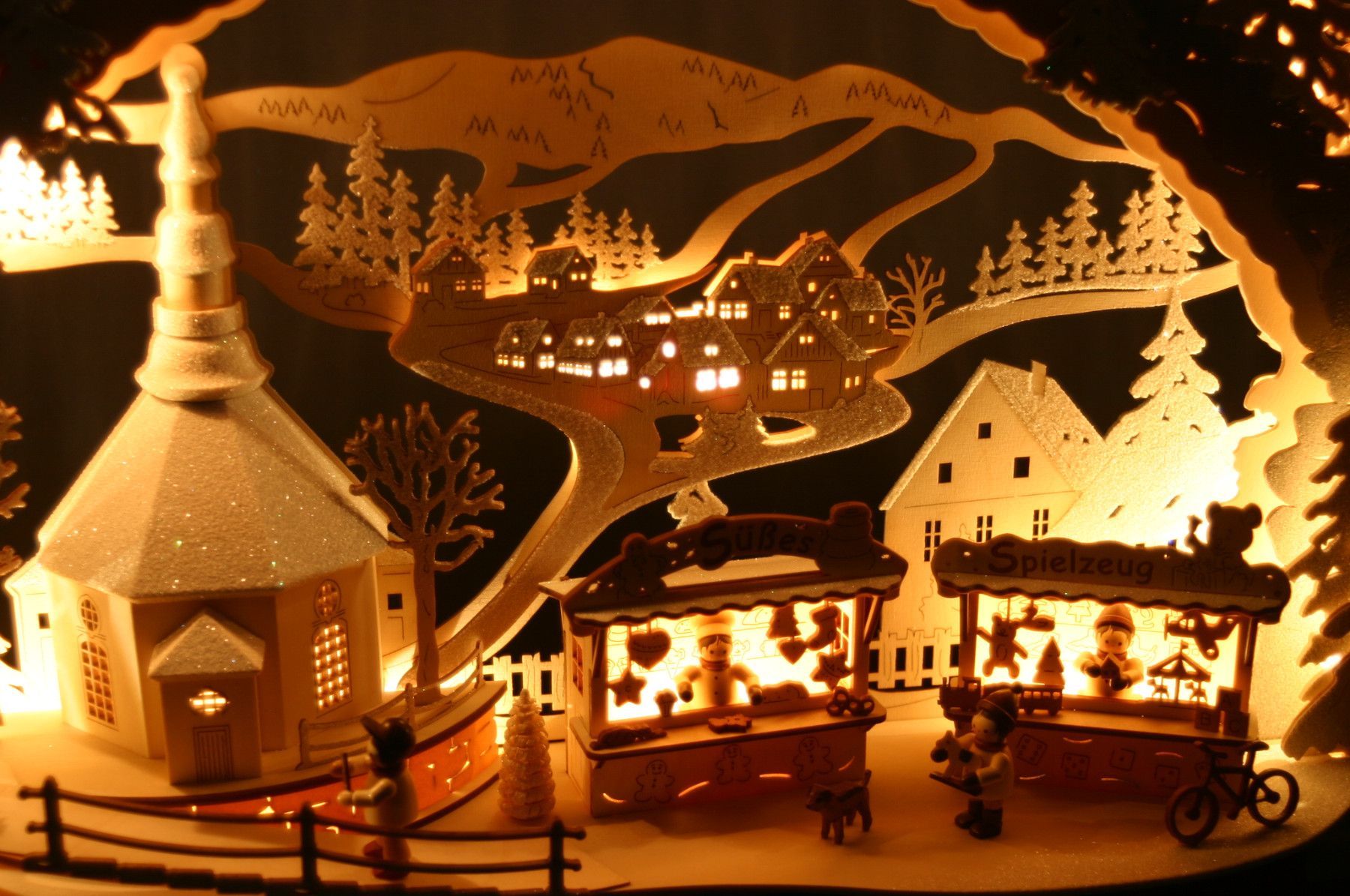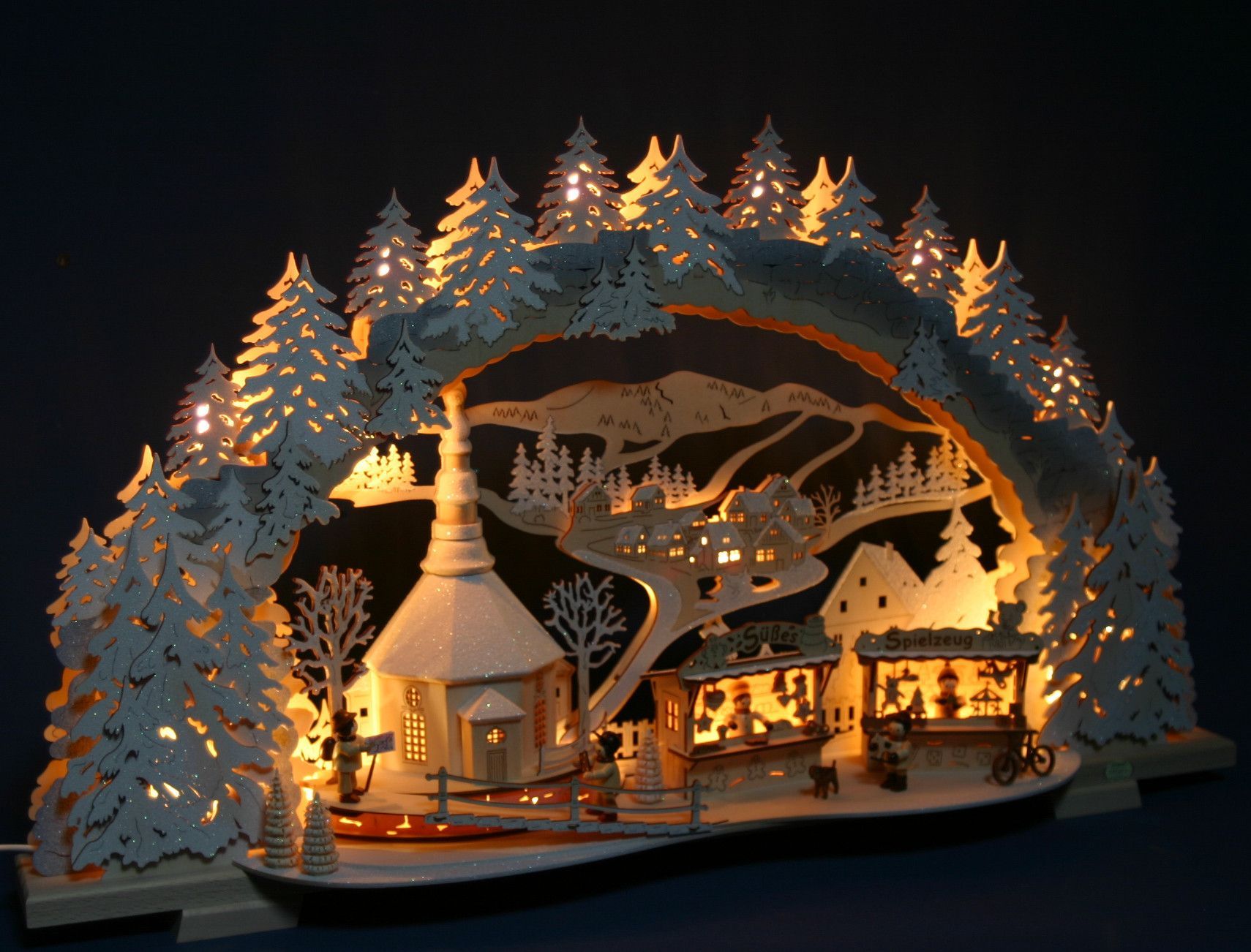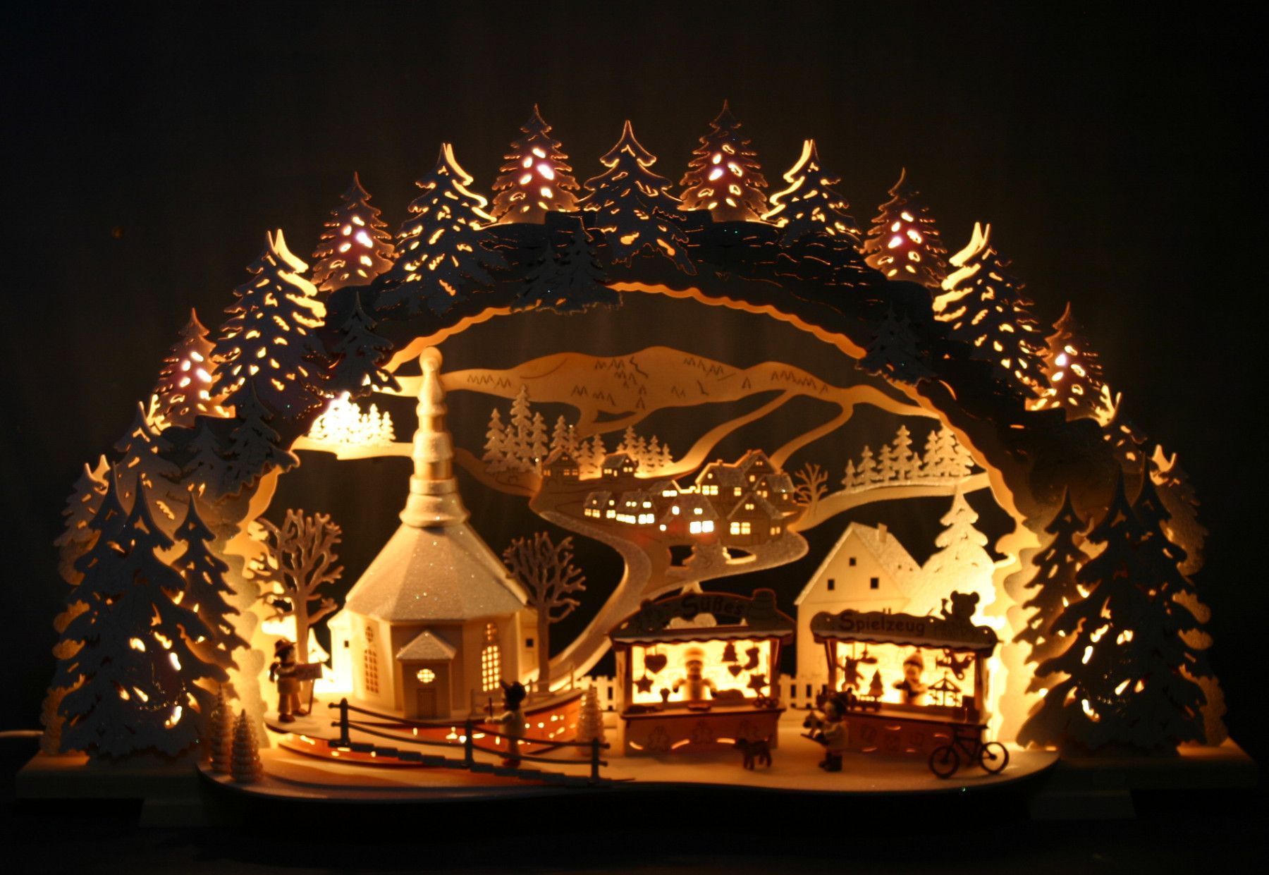 3D Schwibbogen 72cm Kirmes verschneit & Seiffener Kirche Erzgebirge + GRATIS