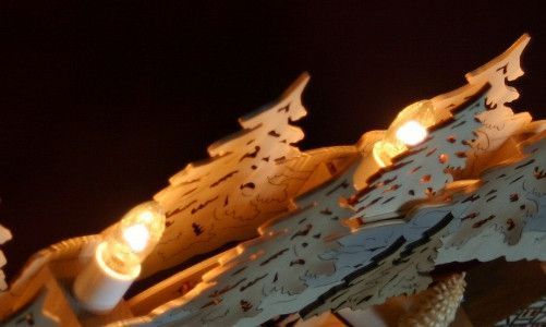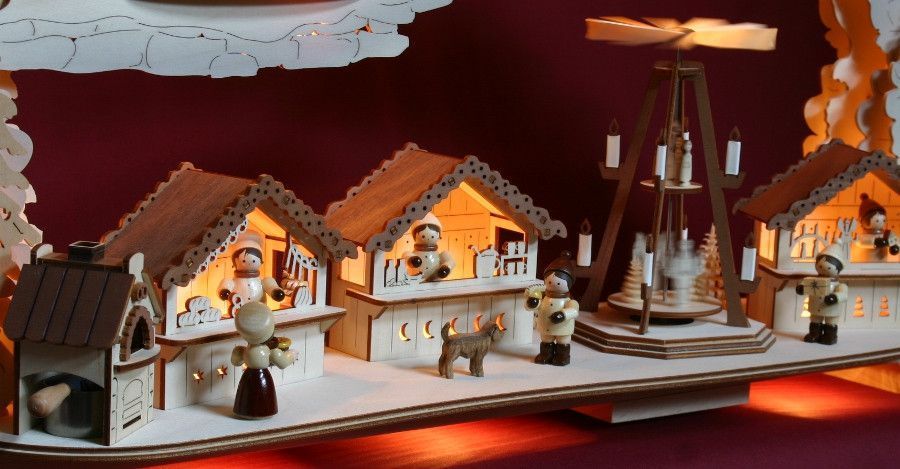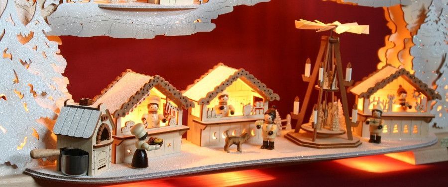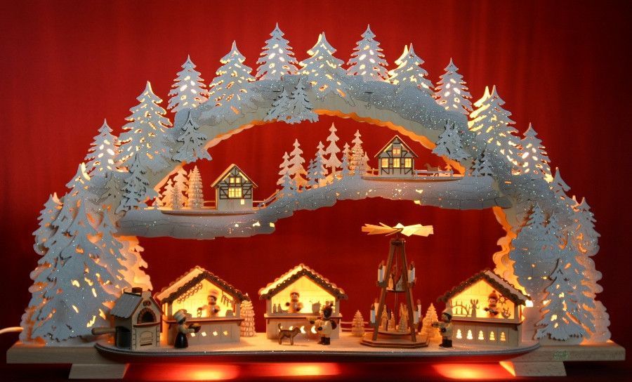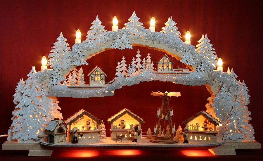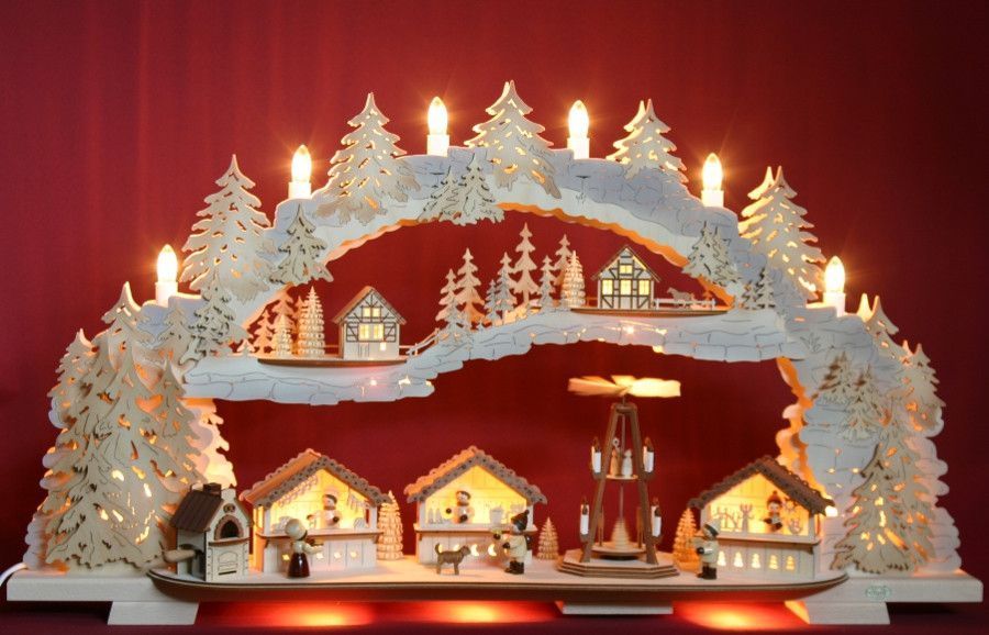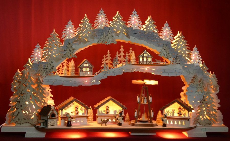 3D-Schwibbogen 72cm Weihnachtsmarkt mit elektrischer Pyramide Erzgebirge Lichterbogen