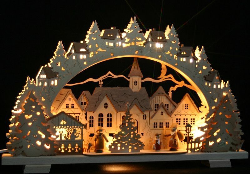 3D-Schwibbogen Adventszeit mit Winterkinder 52x32cm Erzgebirge Lichterbogen Seiffen