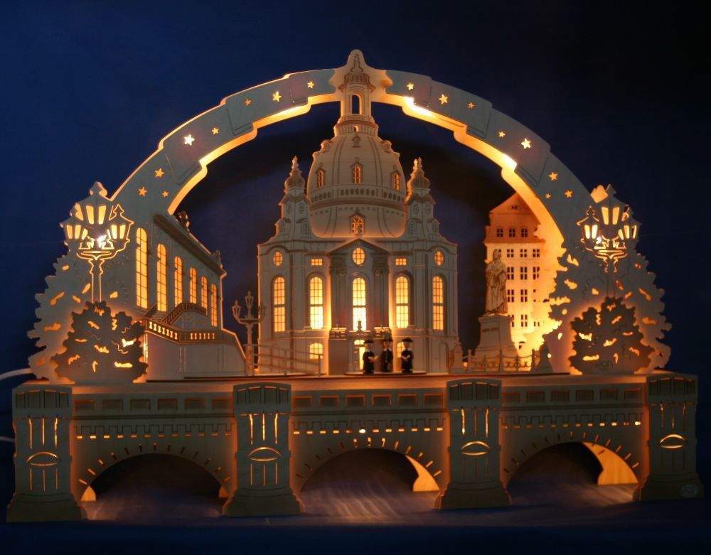 3D-Schwibbogen-Erhöhung 72cm Sockel Augustusbrücke Dresden Erzgebirge Frauenkirche