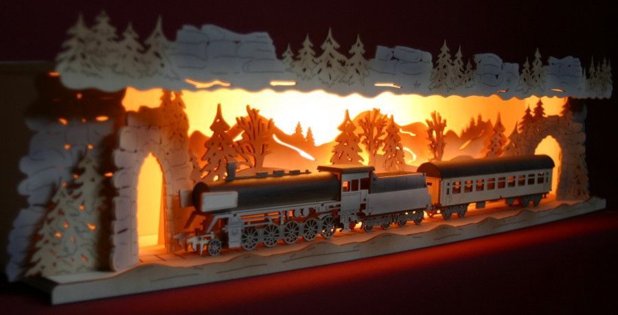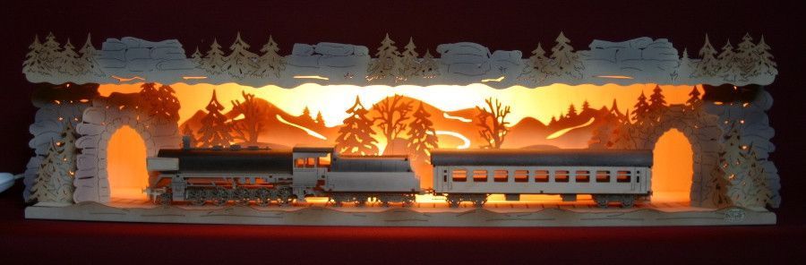 3D-Schwibbogen-Erhöhung Sockel Bank 76cm Eisenbahn Lok Dampflok Zug Erzgebirge