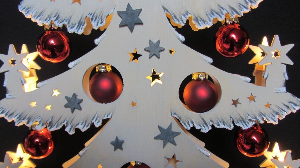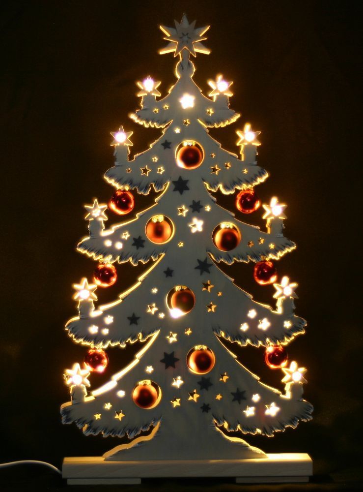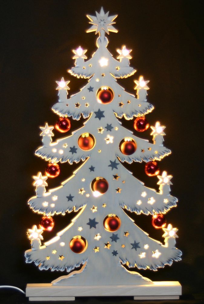 3D-Schwibbogen LED Tanne Tannenbaum rote Kugeln & Raureif Erzgebirge Lichterbogen