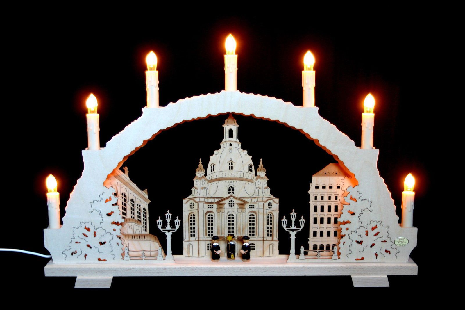 3D-Schwibbogen mit 7 Kerzen Frauenkirche Dresden 52x32cm Erzgebirge Lichterbogen