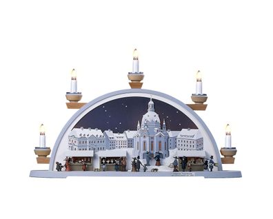 • Schwibbogen Frauenkirche mit Striezelmarkt um 1900 BxHxT 53x34x12cm NEU Lichterb