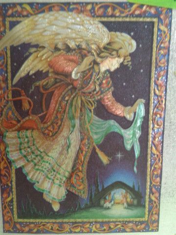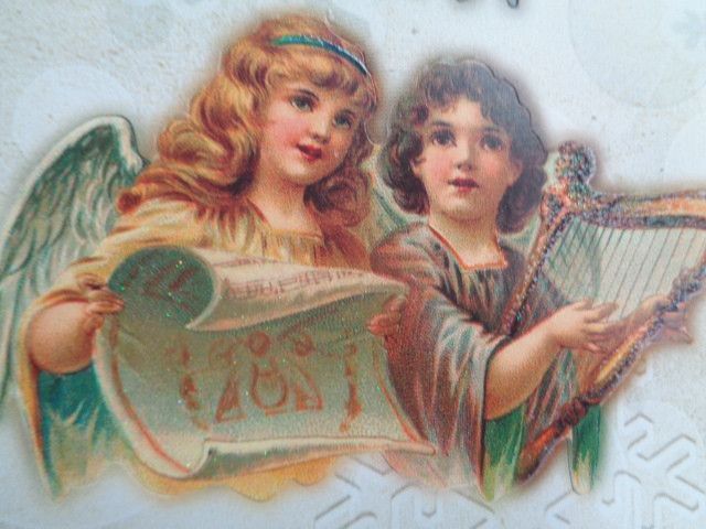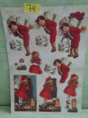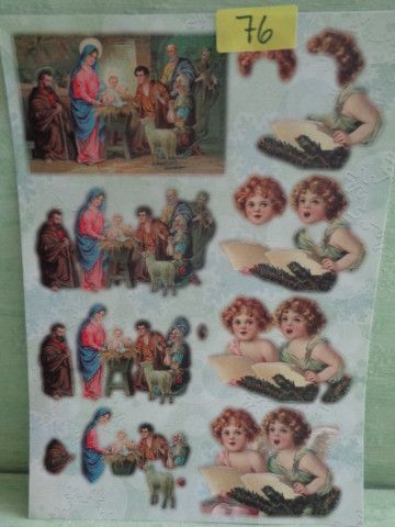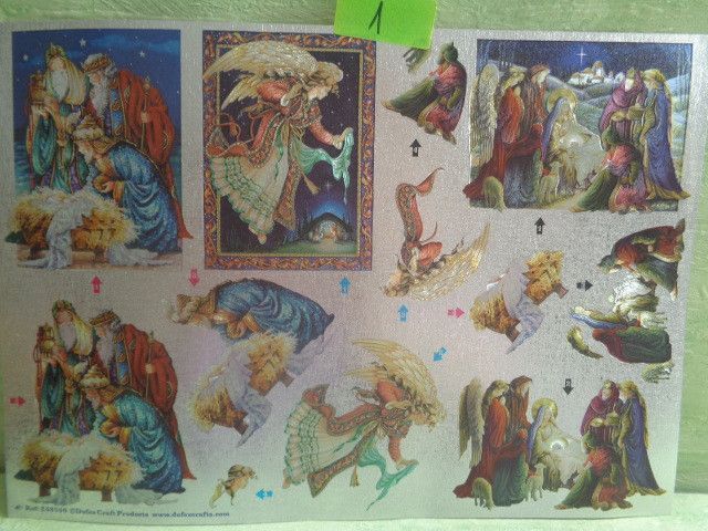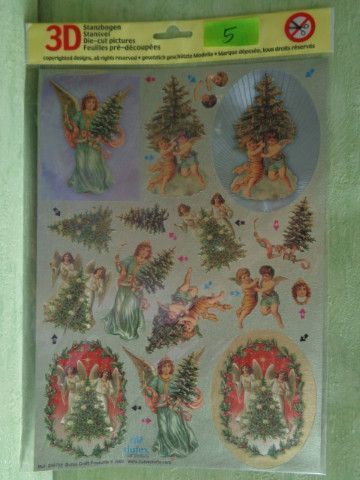 3D Stanz Schneidebogen Sticker Glimmer Dufex Weihnachten Krippe Kinder Engel Vintage