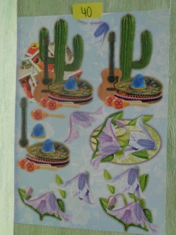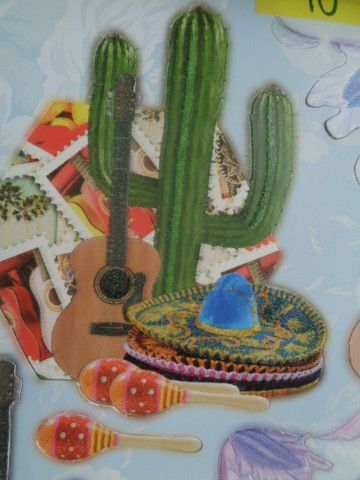3D Stanzbogen mit Glimmer ferne Länder Mexiko ? Kakteen Kaktus Sombrero Cowboy