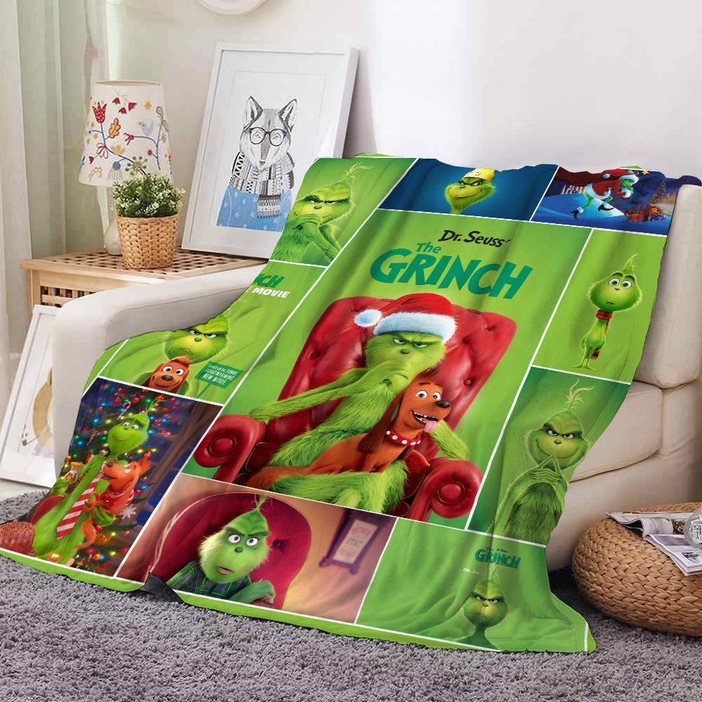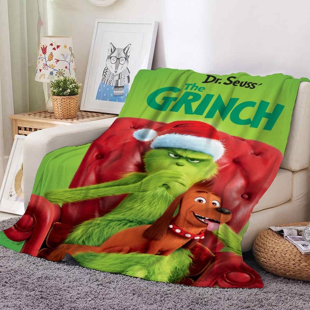 3D The Grinch Flannel Fleece Blanket Max Cindy-Lou Nap Decke Sofa Quilt mit 2 Größen