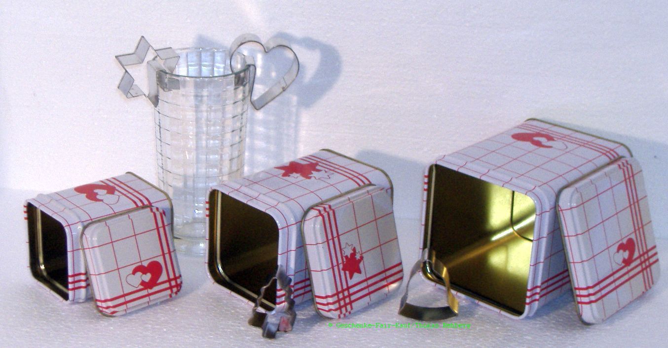 3er Dosen Set mit 4 Keks Ausstecher Weihnachtsbäckerei Mitbringsel Geschenk